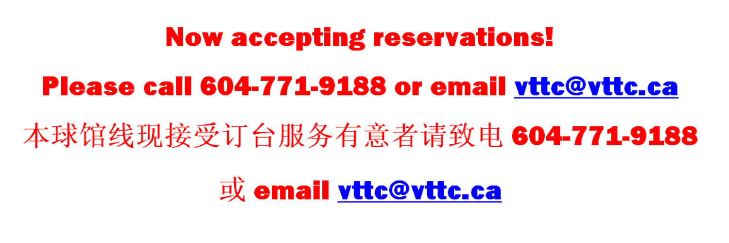 Vancouver Table Tennis Club (VTTC) is one of the best table tennis club in the Greater Vancouver area. The Club offers high quality tournament-level tables in a comfortable, well-lit playing environment.